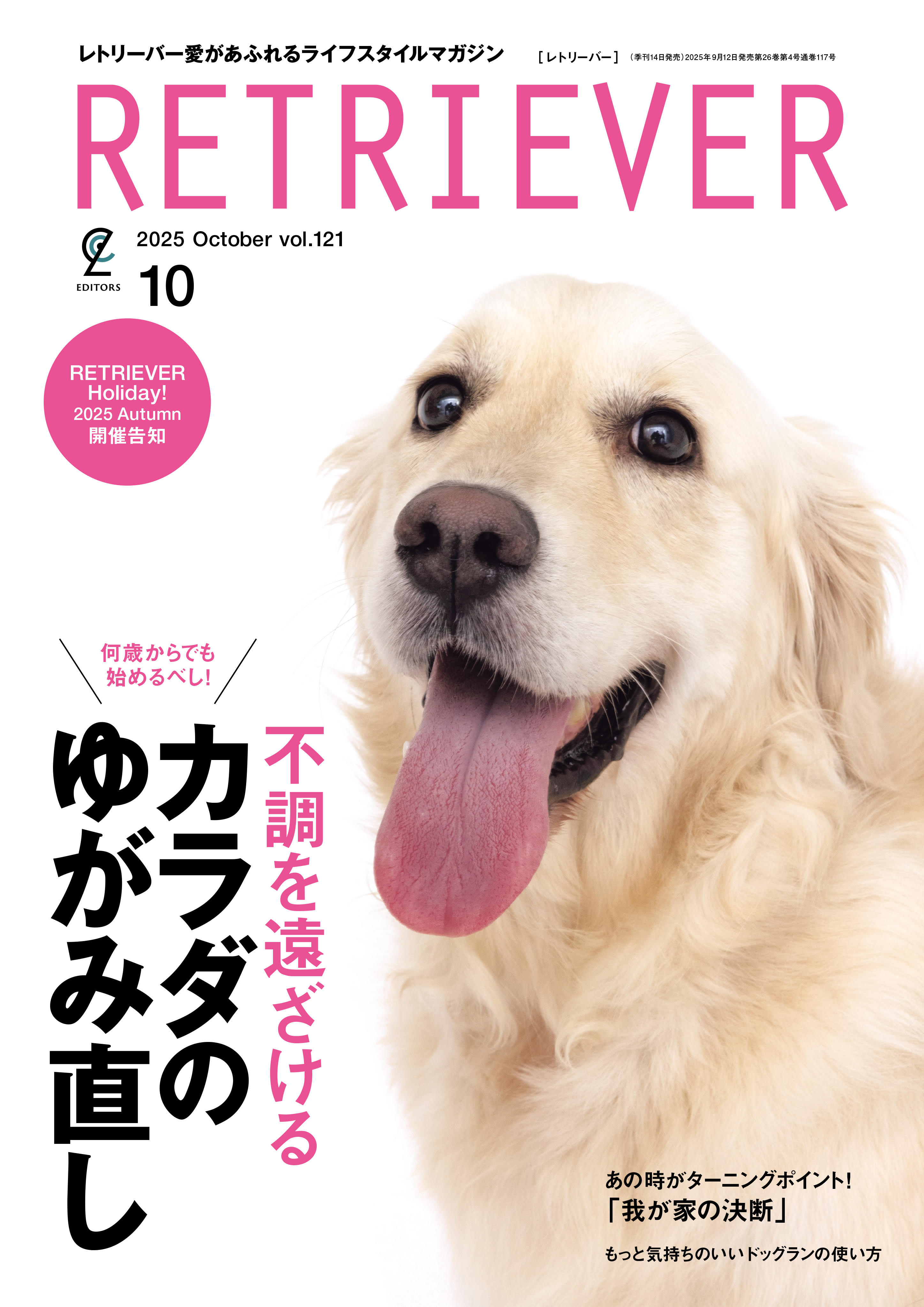毎年、秋頃に開催される本誌主催の『RETRIEVER MEET』。会場の広さや安全性を考慮して、限定組数にご参加いただく一大イベント。参加者全員の記念撮影を行う「キミといつまでも…」の他にも、レトと飼い主の絆が深まるプログラムが満載!